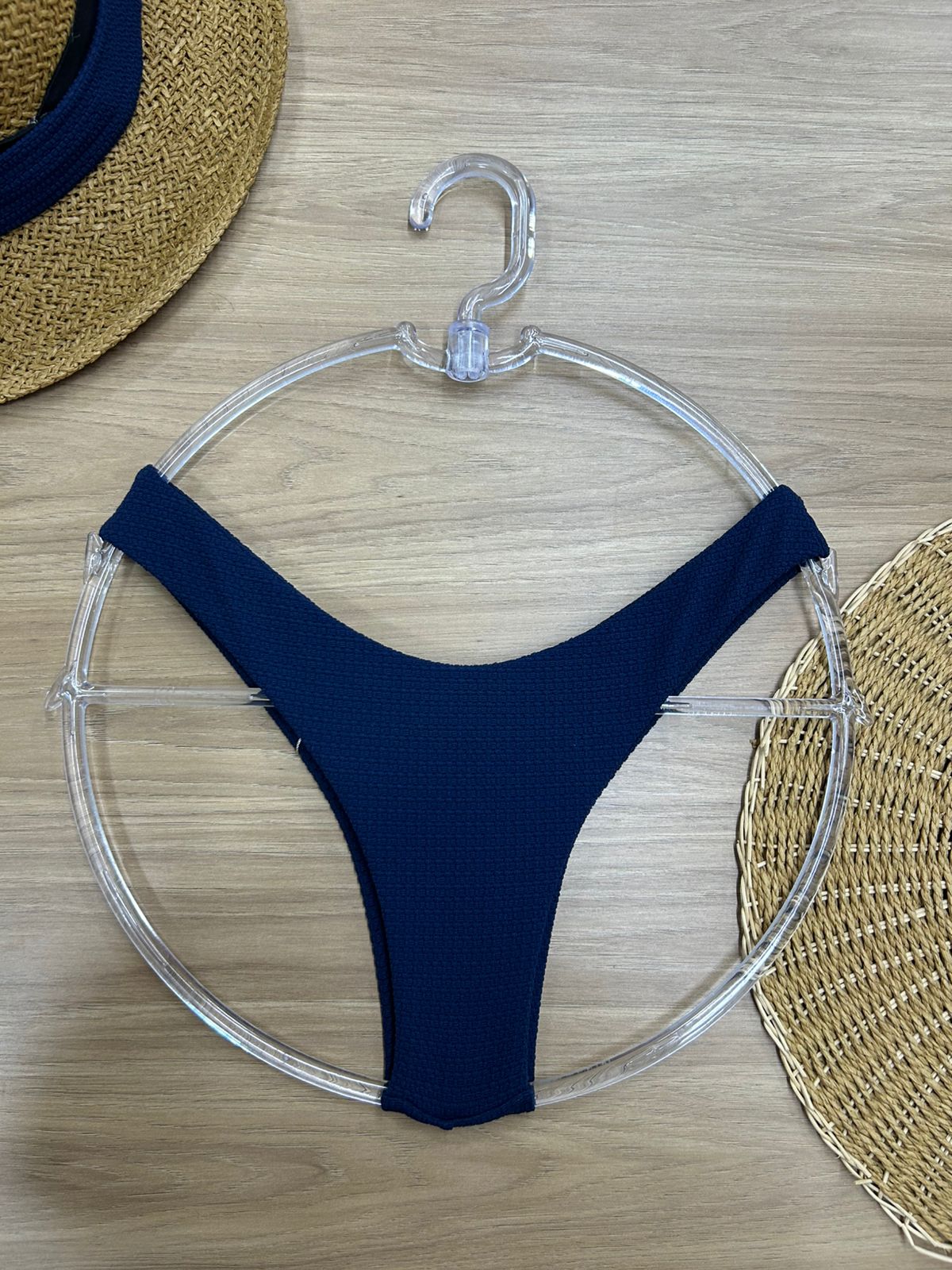 Calcinha biquini asa-delta fio duplo na cor azul texturado.