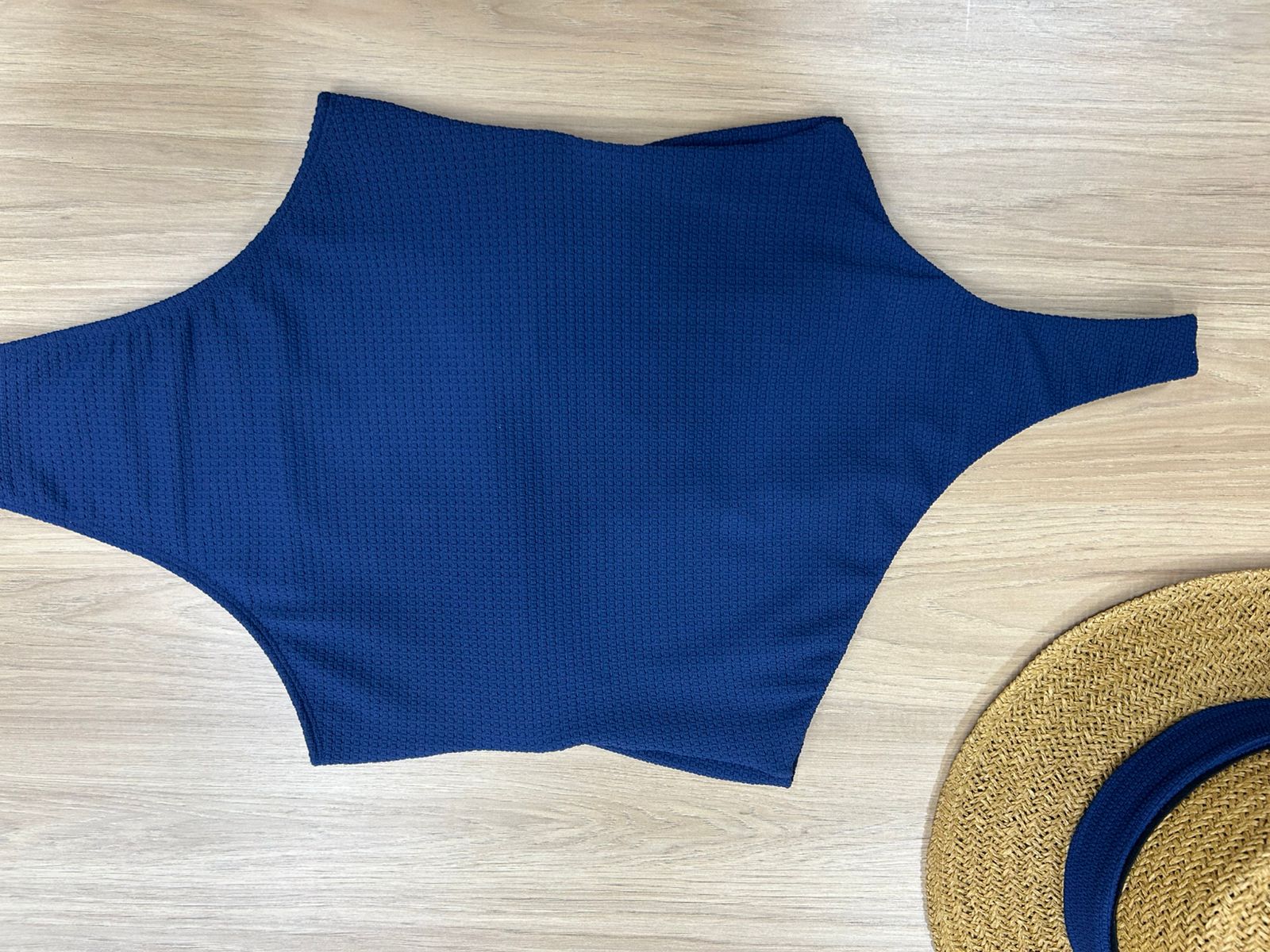 MAIÔ UM OMBRO SÓ NA COR AZUL MARINHO COM RECORTE SOFISTICADO E DETALHE EXCLUSIVO - 642