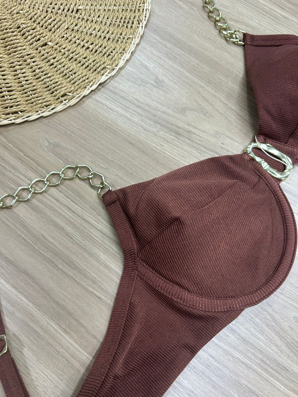 TOP BIQUINI RETRO COM ACESSÓRIO NA COR MARROM | REF4154A
