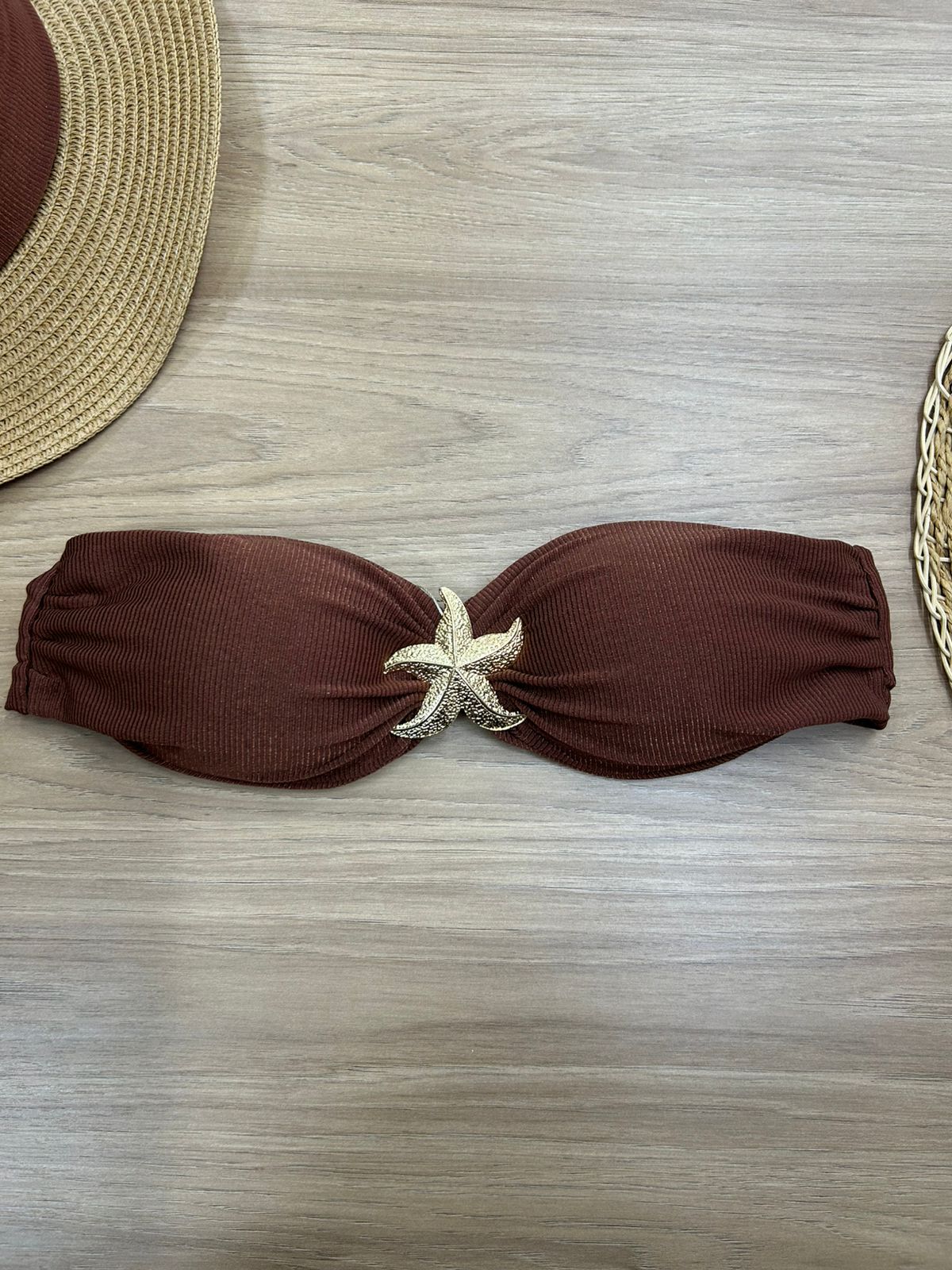 TOP BIQUINI TOMARA QUE CAIA NA COR MARROM COM ACESSÓRIO | REF 4153M